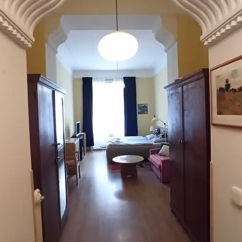 Apartmán leží v historickém centru Karlových Varü, naproti Divadelnímu náměstí. Na půl cesty mezi Vřídlem a Puppem. 50 m od hlavní promenády. Pohodlné ubytování je hostům poskytováno v moderně zařízeném a plně vybaveném apartmánu s celkovou kapacitou 4 lůžek. Součástí základního zařízení apartmánu je plně vybavená kuchyňka, ložnice s manželskou postelí, obývací část s rozkládacím lůžkem a moderní koupelna se sprchovým koutem a sociálním zařízením. Nechybí pračka, žehlička, fén, dostatek úložných prostor a pohodlný nábytek. K příjemnému ubytování přispívá také televize se satelitním příjmem a bezplatné bezdrátové internetové připojení. Ubytování s domácími mazlíčky bohužel není možné.