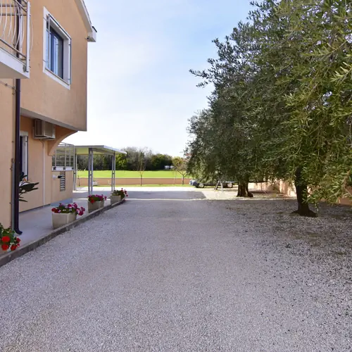 Nacházejí se v přízemí rodinného domu a každý apartmán má vlastní kryté parkovací stání, vlastní terasu, klimatizaci a internet. Na dvoře ke společnému užívání je gril, trampolína pro děti a kola.