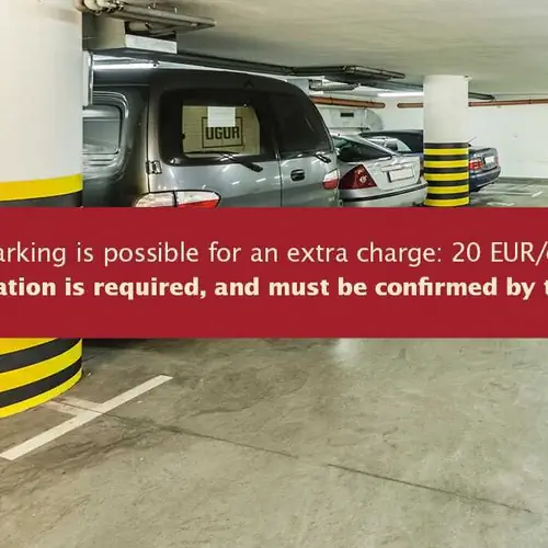 Vlastní parkoviště (za poplatek, 8 ks, garáž 20 € (~ 488 Kč)/noc)