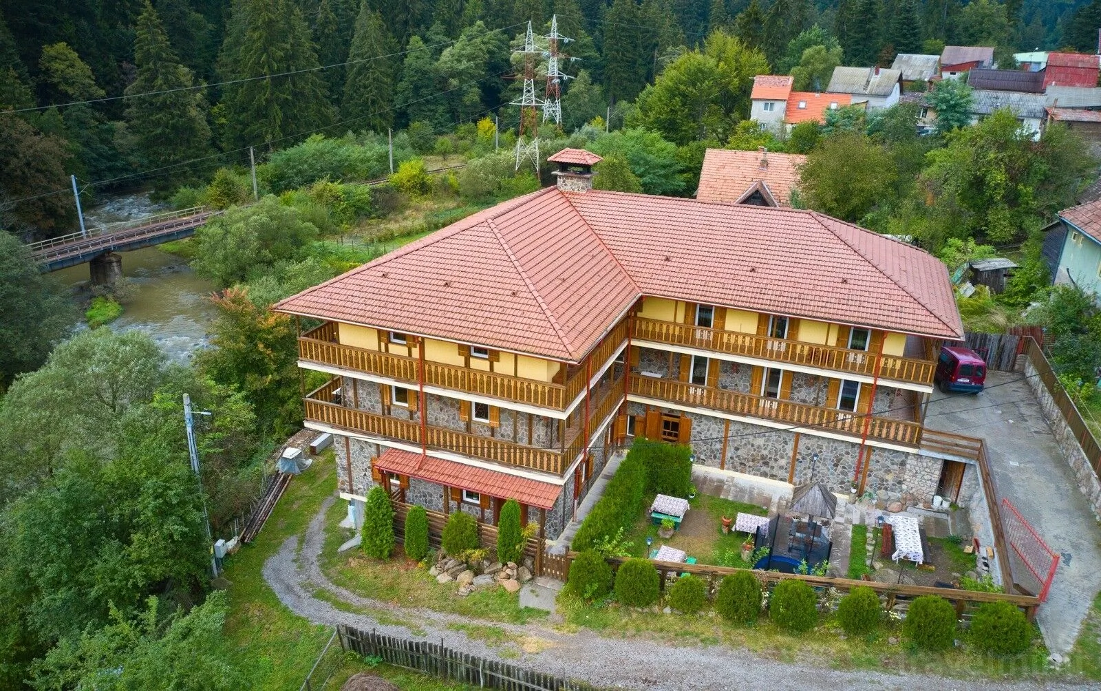 Umístění a okolí Vzdálenosti od ubytovacího zařízení: Kostel Nanebevzetí Panny Marie 1.3 km , Wellness Tusnad Zážitkové lázně 1.6 km, Dobrodružný park Aventuraa 1.1 km.