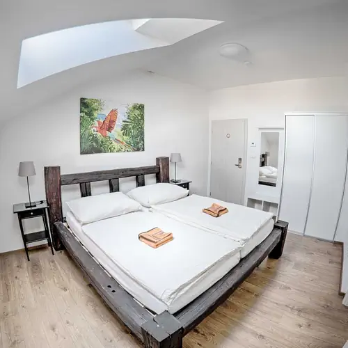 Pokoj se společnou kuchyňkou s manželskou postelí