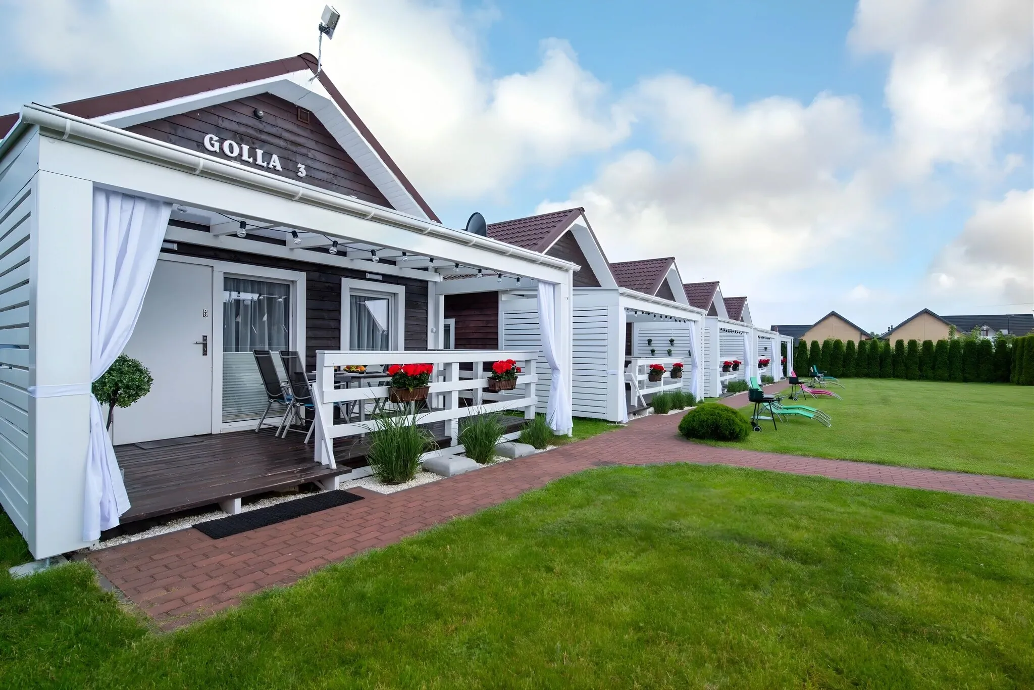 Na každém místě je TV se SAT, WiFi, lednice s mrazákem, gril, zahradní nábytek, zastřešená terasa a sušák na prádlo. Hotelové postele jsou plnohodnotné - velmi pohodlné, lněné.