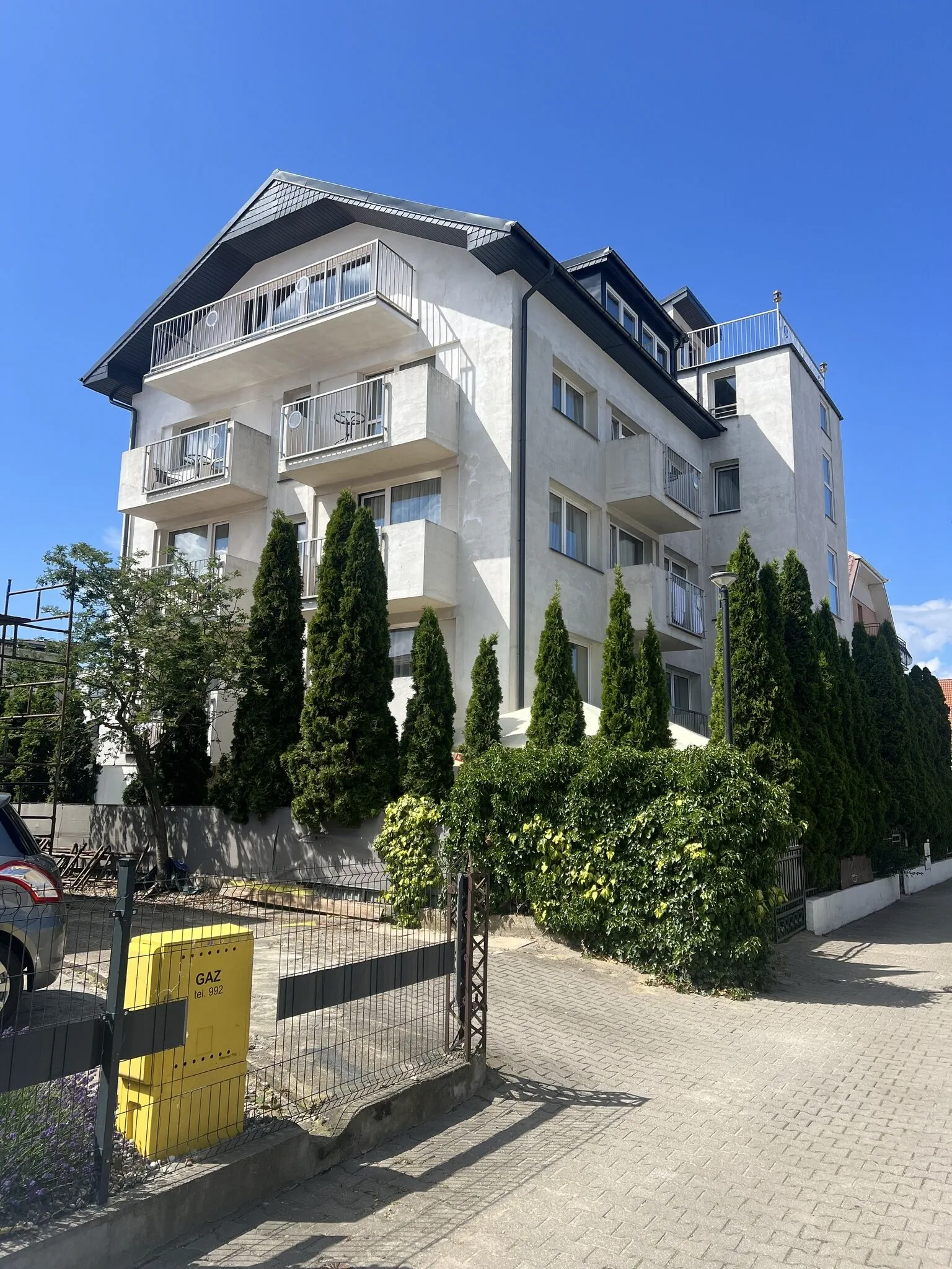 Vlastní parkoviště (za poplatek, 20 ks, vyžaduje se rezervace předem, uzavřené, s kamerovým dohledem 20 zł (~ 114 Kč)/noc)