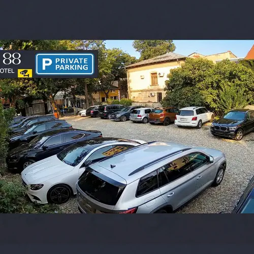 Vlastní parkoviště (zdarma, 31 ks, uzavřené, s kamerovým dohledem)