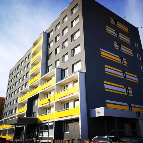 Vlastní parkoviště (za poplatek, 15 ks, s kamerovým dohledem, 10 ks, s kamerovým dohledem 50 Kč/den)