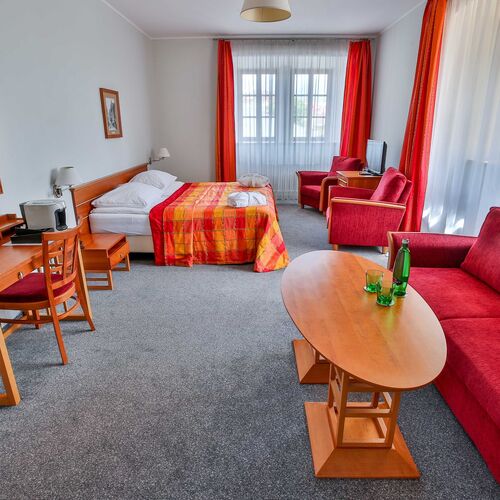 Pokoje, služby LH Hotel Dvořák Tábor Congress & Wellness nabízí prostorné a komfortně zařízené pokoje (72 ks) pro hosty, kteří hledají uvolnění po namáhavém dni ve městě Tábor. Ubytování domácích zvířat v LH Hotel Dvořák Tábor Congress & Wellness je povoleno. Pobyt s domácím zvířetem je za poplatek. Každý den čerstvě připravené speciality Vám nabízí restaurace přímo v objektu. Za poplatek pro ubytované hosty je k dispozici parkoviště přímo u objektu. Pro hosty kteří hledají uvolnění po namáhavém dni, jsou k dispozici relaxační a wellness služby. Bližší informace naleznete níže ve formuláři. Přesný a podrobný seznam poskytovaných služeb (včetně služeb za příplatek) a vybavení pokojů v LH Hotel Dvořák Tábor Congress & Wellness naleznete níže ve formuláři při podrobnostech zvoleného pokoje.