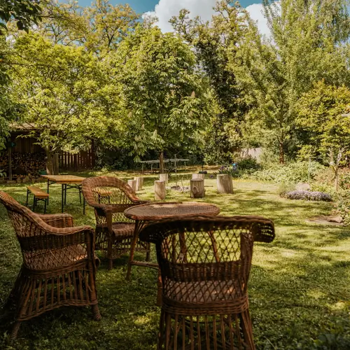 Možnost nabíjení elektromobilů (2 000 Ft (~ 125 Kč)/příležitost), Možnost nabíjení elektrokola (500 Ft (~ 31 Kč)/příležitost), Topení, Vlastní úschovna kol, Zahrada, Žehlička