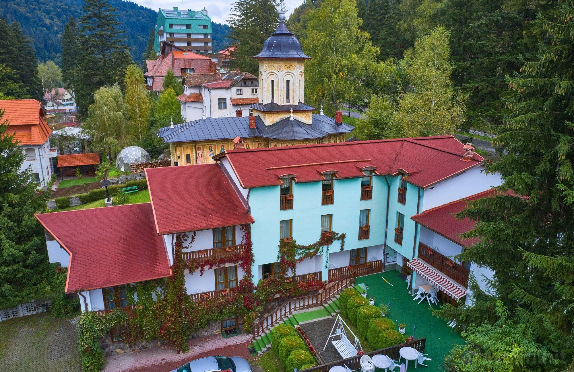 Umístění a okolí Vzdálenost od ubytování: Dobrodružný park Aventuraa 400 m , Kostel Nanebevzetí Panny Marie 100 m, Wellness Tusnad Zážitkové lázně 500 m.