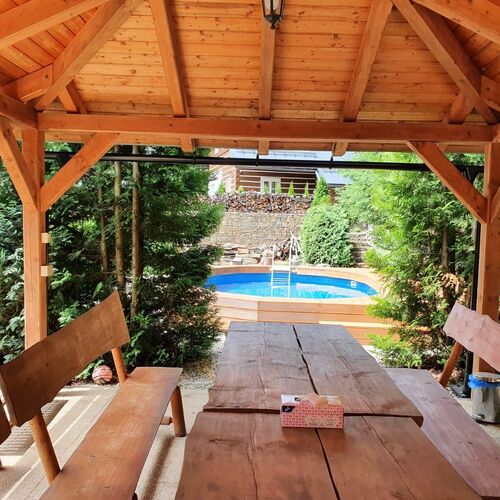 Rodinné apartmány s kuchyňskou linkou, lednicí, obývacím pokojem a ložnicí, krásné koupelny... samostatné apartmánky i velké dvouložnicové apartmány. Rádi Vás přivítáme v horském penzionu přímo u lesa a vzdáleném 150m od lyžařského areálu. Krásně udržovaný pozemek s dětským hřištěm, venkovním bazénem, spoustou míst s posezením a krásnými výhledy. Venkovní gril i ohniště s připraveným dřevem... jen si pochutnat. Les přímo u penzionu... na houby a borůvky.