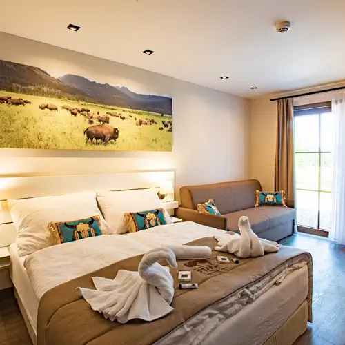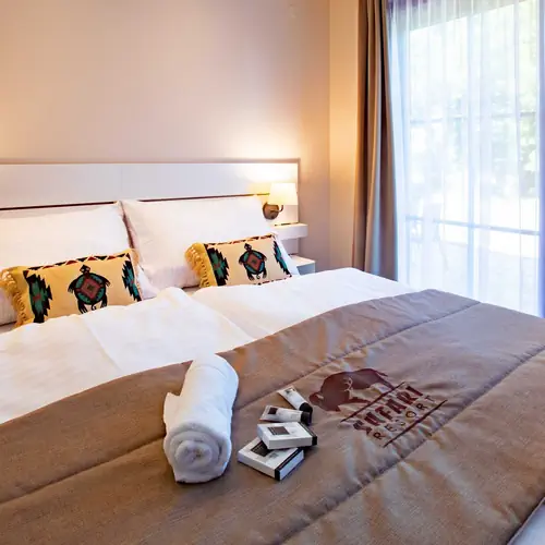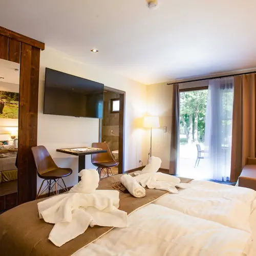 Pokoje, služby Residence Safari Resort Borovany nabízí prostorné a komfortně zařízené pokoje (9 ks) pro hosty, kteří hledají uvolnění po namáhavém dni ve městě Borovany. Každý den čerstvě připravené speciality Vám nabízí restaurace přímo v objektu. Můžete zaparkovat své vozidlo zdarma u objektu na parkovišti. I během letních veder Vám nebude horko, jelikož některé pokoje mají k dispozici klimatizaci. Součástí vybavení je WiFi připojení na internet pro ubytované hosty. Vybavení jednotlivých pokojů v Residence Safari Resort Borovany a podrobný seznam poskytovaných služeb (včetně služeb za příplatek) naleznete níže v podrobnostech zvoleného pokoje.