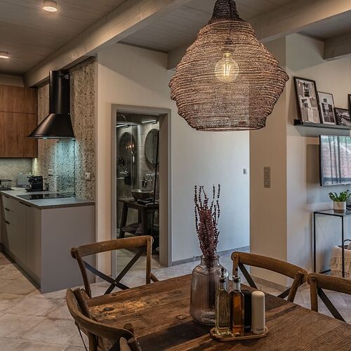 Apartmány nabízejí nadstandardní ubytování, kdy ikonický nábytek a doplňky vnáší do interiéru jedinečné kouzlo. Při vybavování apartmánů jsme dbali na dodržování čistých linií a harmonie v barvách, aby byla vytvořena útulná přátelská atmosféra moderního designu a venkovského stylu. Apartmány se nachází v 1. patře domu. Součástí každého apartmánu jsou 2 samostatné ložnice s manželskými postelemi 26 cm vysokými matracemi pro dosažení toho nejkvalitnějšího spánku, dále plně vybavená kuchyň (tzn. myčka, lednice, indukční deska, mikrovlnná trouba, rychlovarná konvice, toustovač a kávovar Nespresso), v kuchyni je veškeré nádobí zahrnující granitové hrnce, včetně základního koření a jaru na mytí nádobí. Jídelní kout je spojen s obývákem spolu se sedačkou, kterou je možno využít jako přistýlku pro 1 osobu. Stylová koupelna s prostorným sprchovým koutem a samostatným WC.