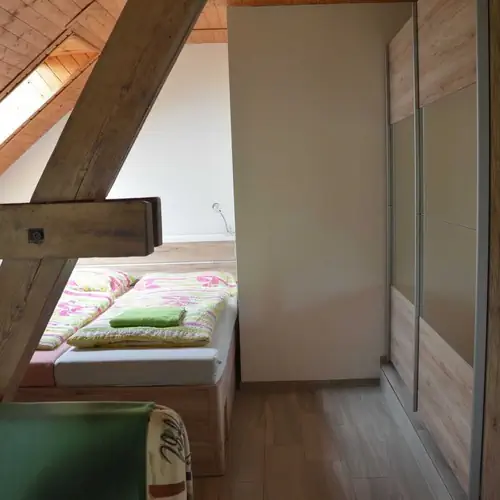 Pokoj se sprchou s manželskou postelí v podkroví (s možností přistýlky)