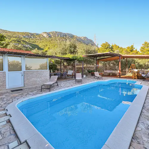 Dům postavený z kamene, Zateplený, Přírodní oblast, Zahradní nábytek