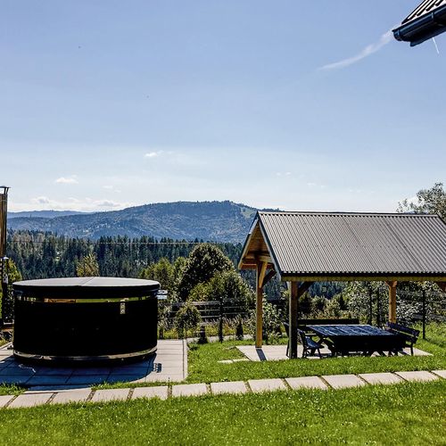 Dřevěný dům, Oplocený pozemek, Společný pozemek, Zateplený, Zahradní nábytek